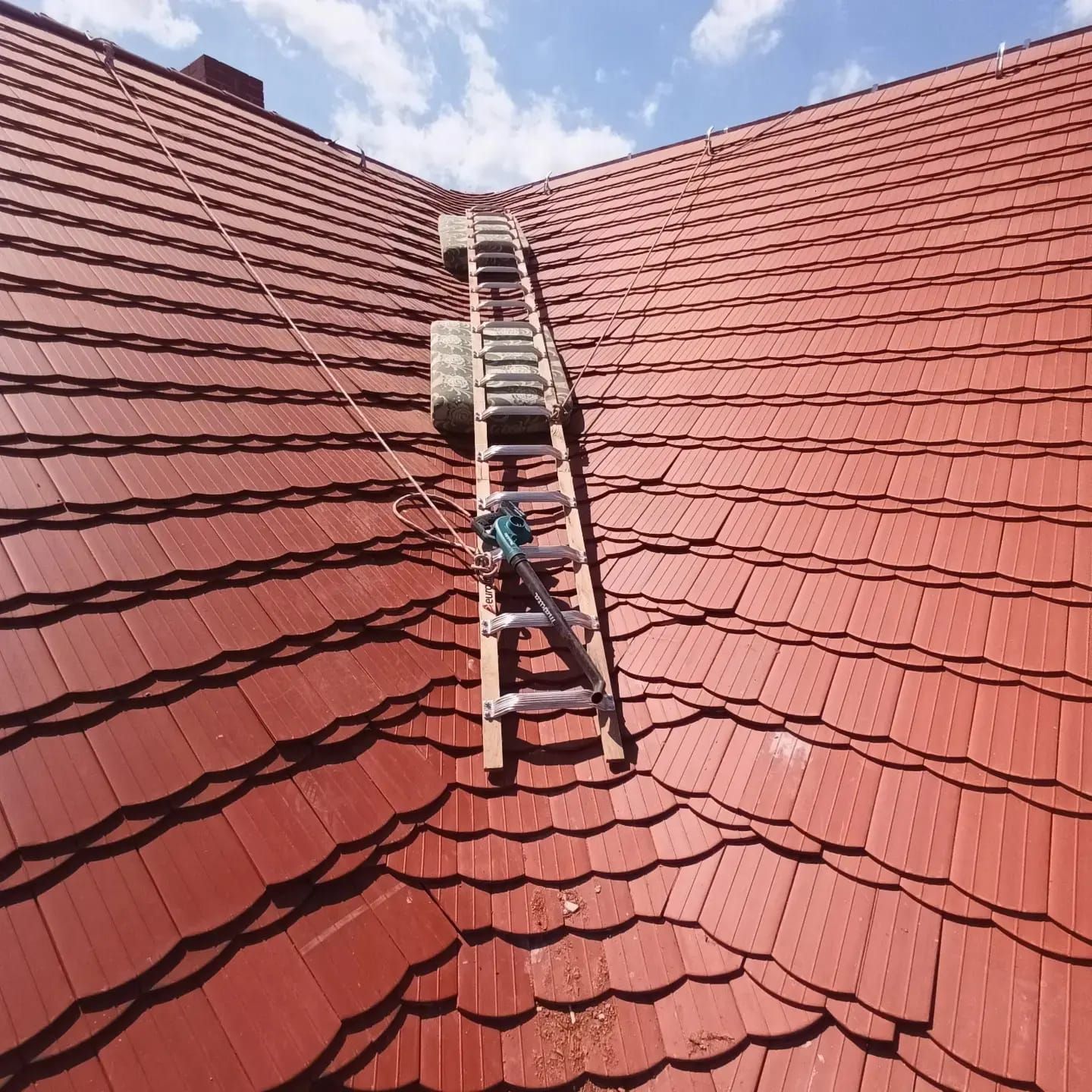 Bei diesem Dachprojekt in Nossen stand traditionelle Handwerkskunst im Vordergrund. Die Eindeckung erfolgte mit klassischen roten Biberschwanz-Ziegeln. Eine besondere Herausforderung war die Gestaltung der Dachkehle, also dem Bereich, wo zwei Dachflächen aufeinandertreffen.